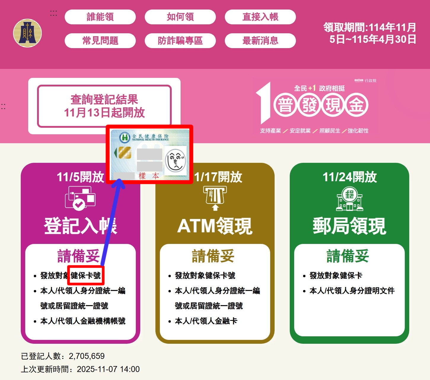 「普發一萬」のサイトのQ&Aには、健康保険カードに記載されている身分証番号が身分証と不一致の場合、速やかに更新してくださいと書いてある!